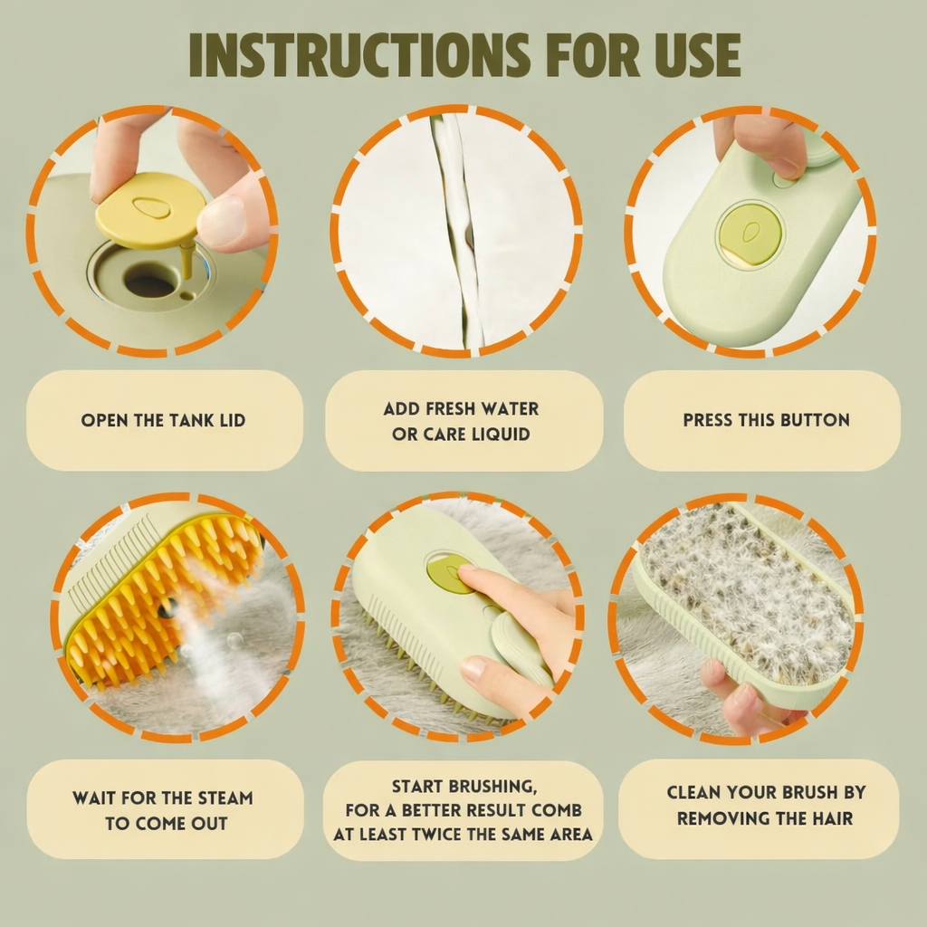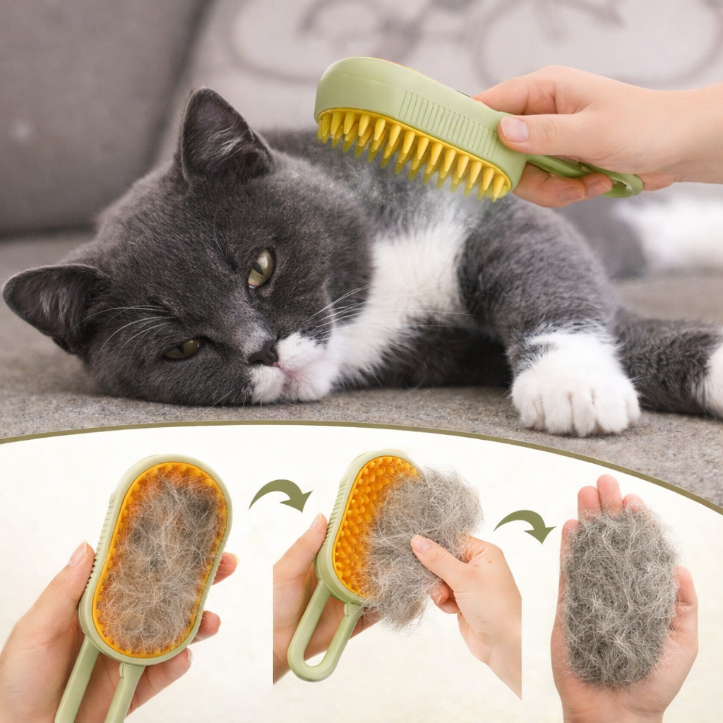 Unlike traditional brushes, the light steam helps hydrate the coat while brushing, reducing static and leaving the fur softer to the touch. The rounded silicone bristles glide comfortably over the skin, creating a soothing, massage-like sensation that many pets genuinely enjoy. 🤍